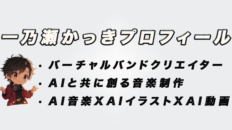- 2025年11月:当サイト(一乃瀬かっき|AI音楽・AIアート・AIバンドのポートフォリオ)を立ち上げる